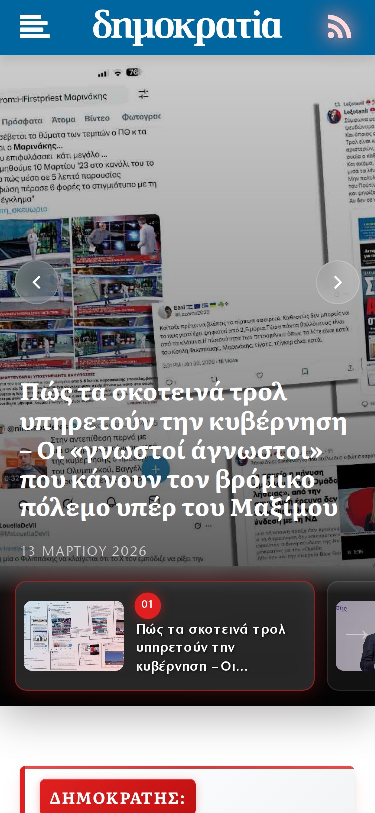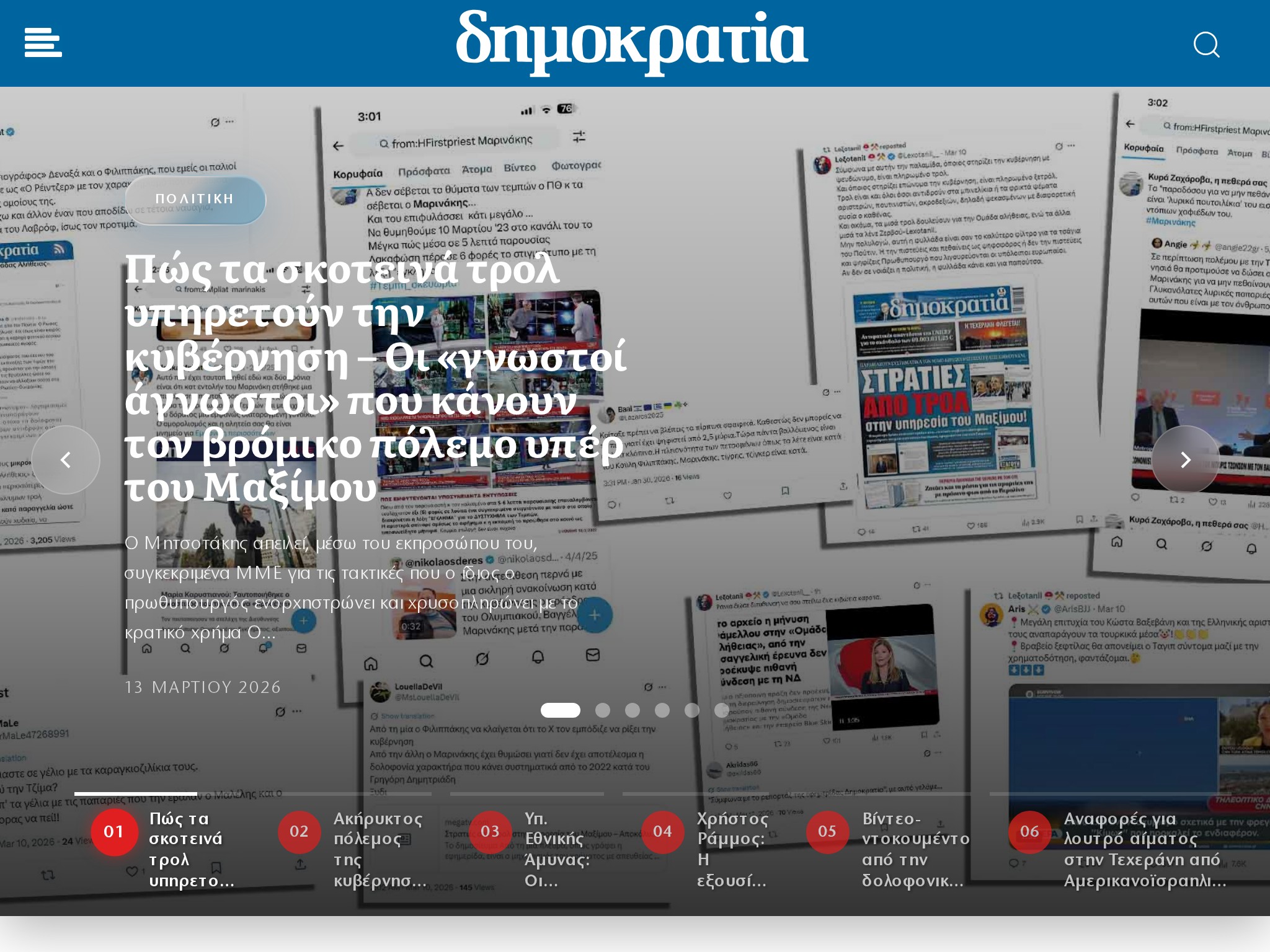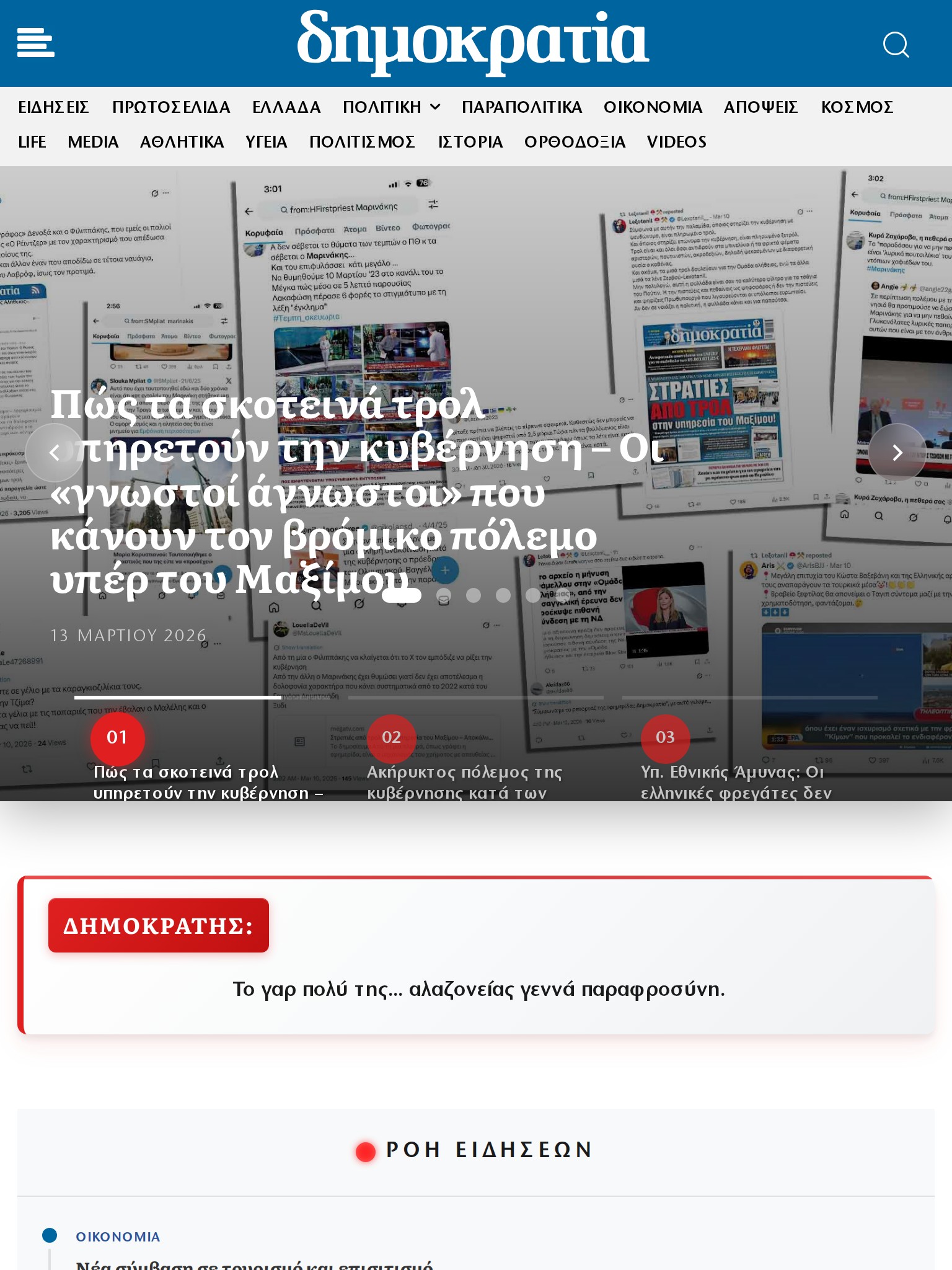 The digital edition of DIMOKRATIA, a major Greek daily political newspaper first published in December 2010 with real-time political coverage and editorial content.