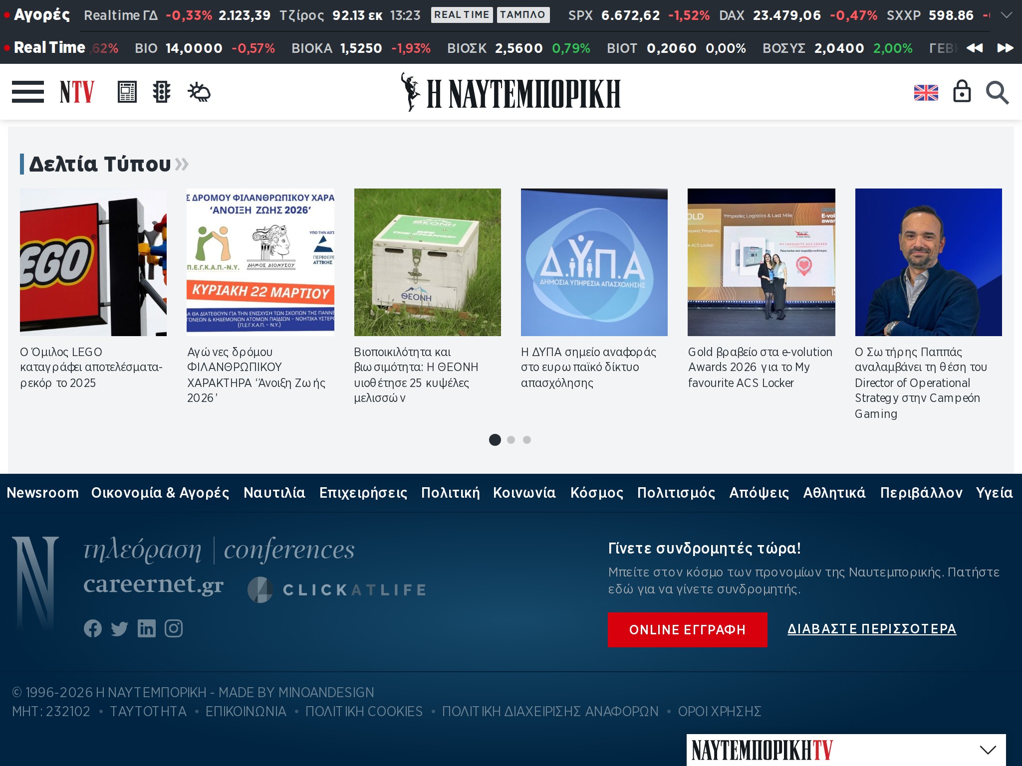 The digital home of NAFTEMPORIKI, Greece's premier financial and business newspaper delivering real-time market data, economic analysis, and breaking news.